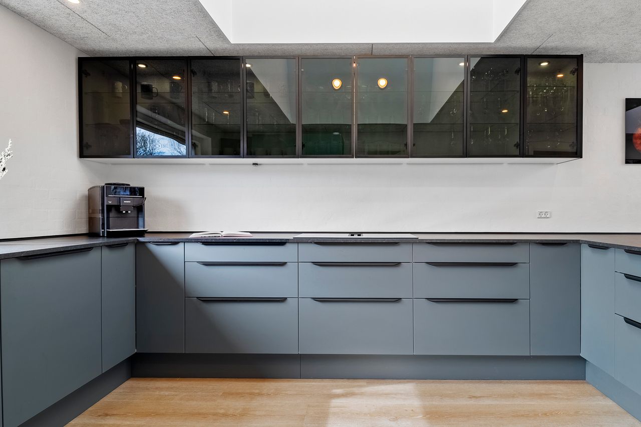 Indenfor bydes I velkommen af et lyst og åbent køkken/alrum, der bliver boligens naturlige samlingspunkt. Herfra er der adgang til en elegant, niveauforskudt stue med forskudt loft, store facadevinduer og smukke ovenlyspartier, som fylder rummene med naturligt lys og skaber en varm og behagelig atmosfære. Boligen har gulvvarme i størstedelen af huset og hele to moderne badeværelser.