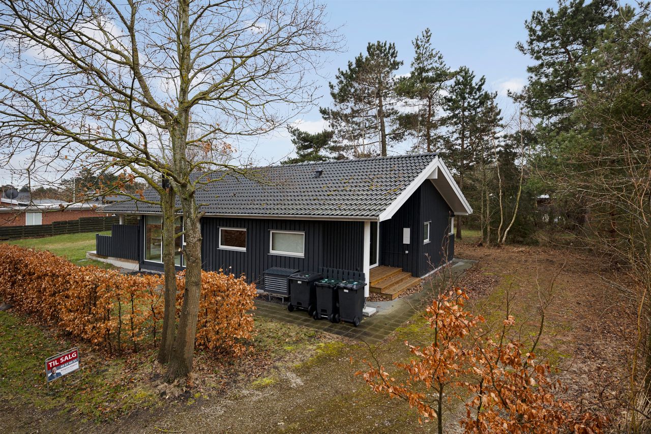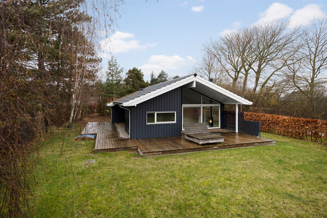 På Lupinvej 9 udbydes dette indbydende og nyopførte fritidshus, hvor moderne komfort og klassisk sommerhusstemning går hånd i hånd.